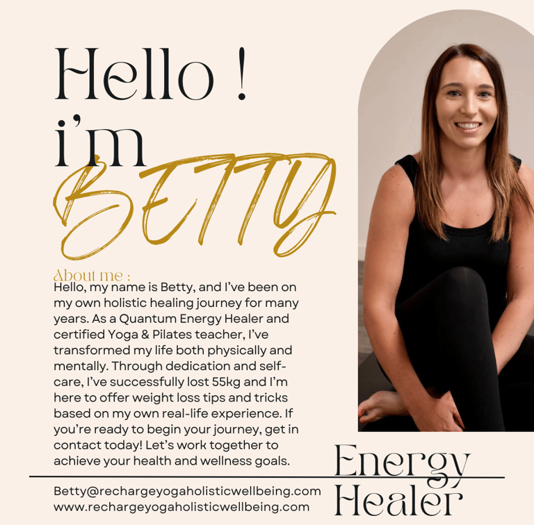 Looking to make a lasting change? Benefit from Weight Loss Coaching with Betty, who has successfully transformed her own life by losing 55kgs. With real-life experience and personalized tips and tricks, Betty is here to guide and support you every step of the way.